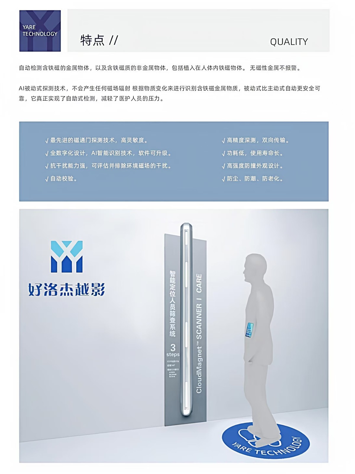 通过以上全面的解决方案,好洛杰越影AI智能铁磁探测系统能够有效保障 MRI 相关场所的安全,提升工作效率,为医疗、科研等工作的顺利开展提供坚实的保障。